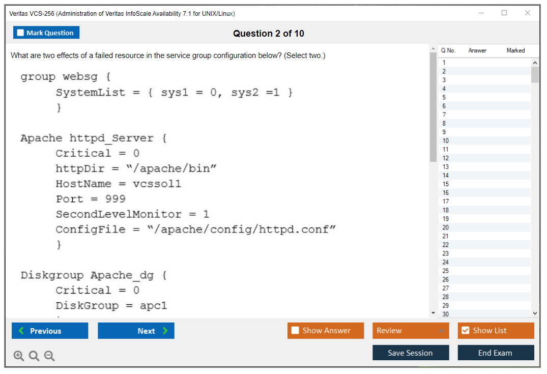 What are the Sample Questions of Veritas VCS-256 Exam?