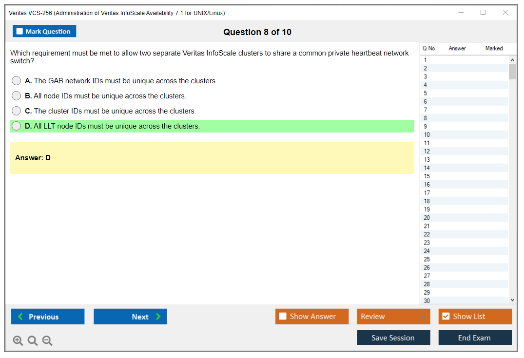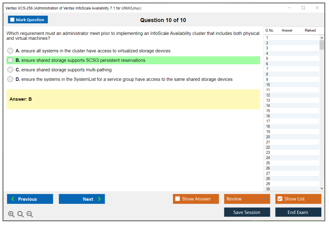 VCS-256 (Administration of Veritas InfoScale Availability 7.1 for UNIX/Linux) PDF + Test Engine