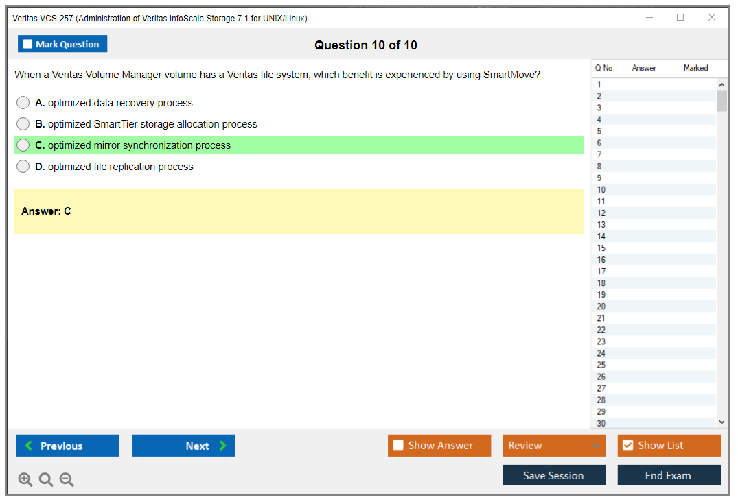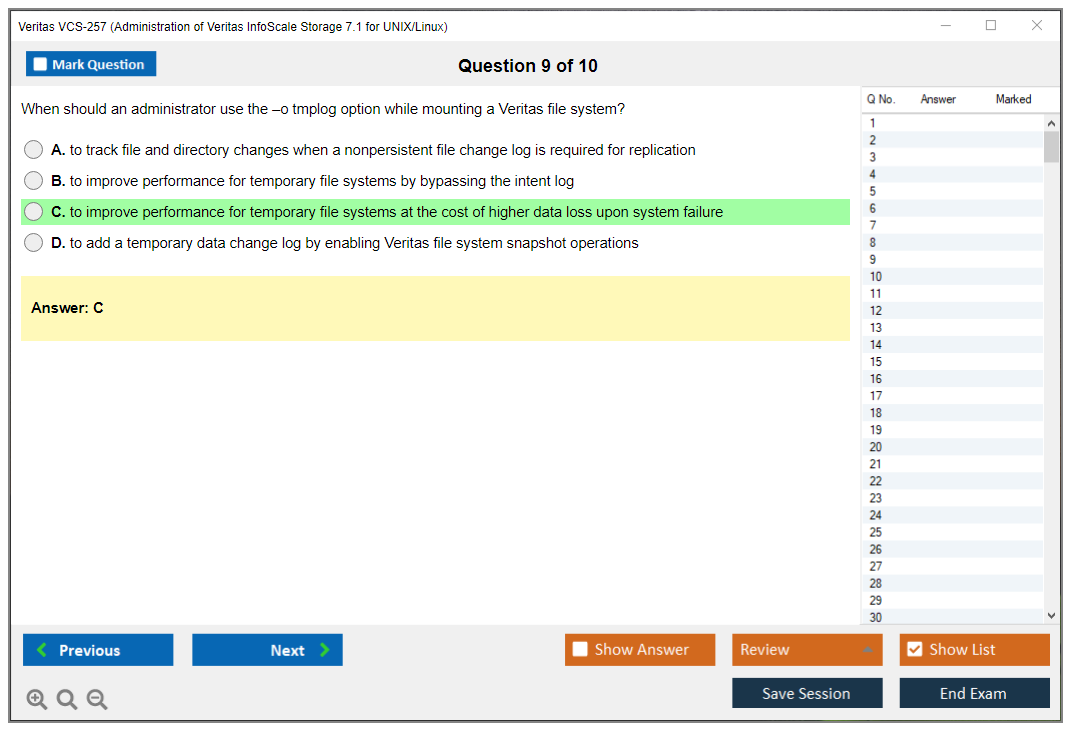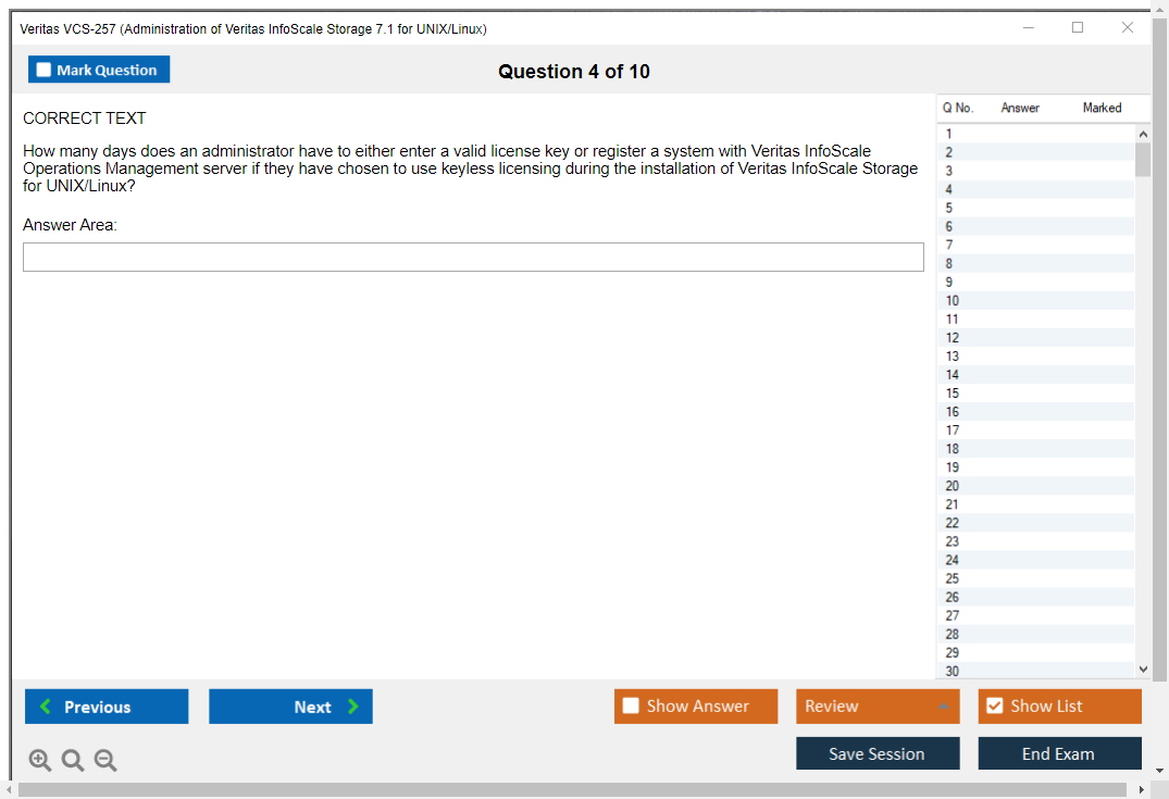 The Veritas VCS-257 exam, also known as Administration of Veritas InfoScale Storage 7.1 for UNIX/Linux, is designed to validate the knowledge and skills required for managing and administering Veritas InfoScale Storage 7.1 in UNIX/Linux environments.
