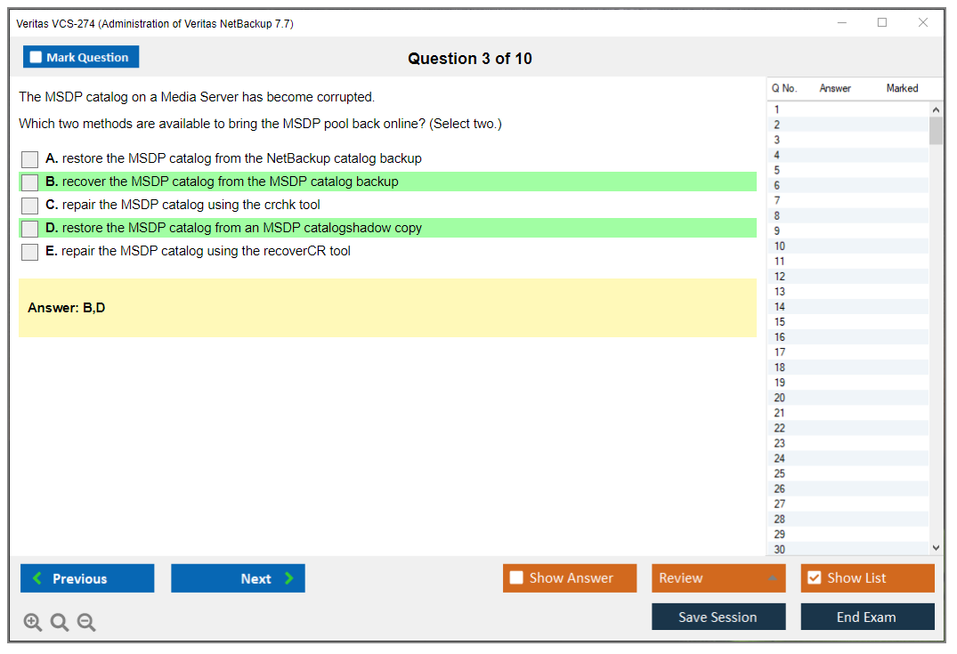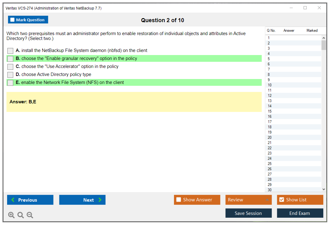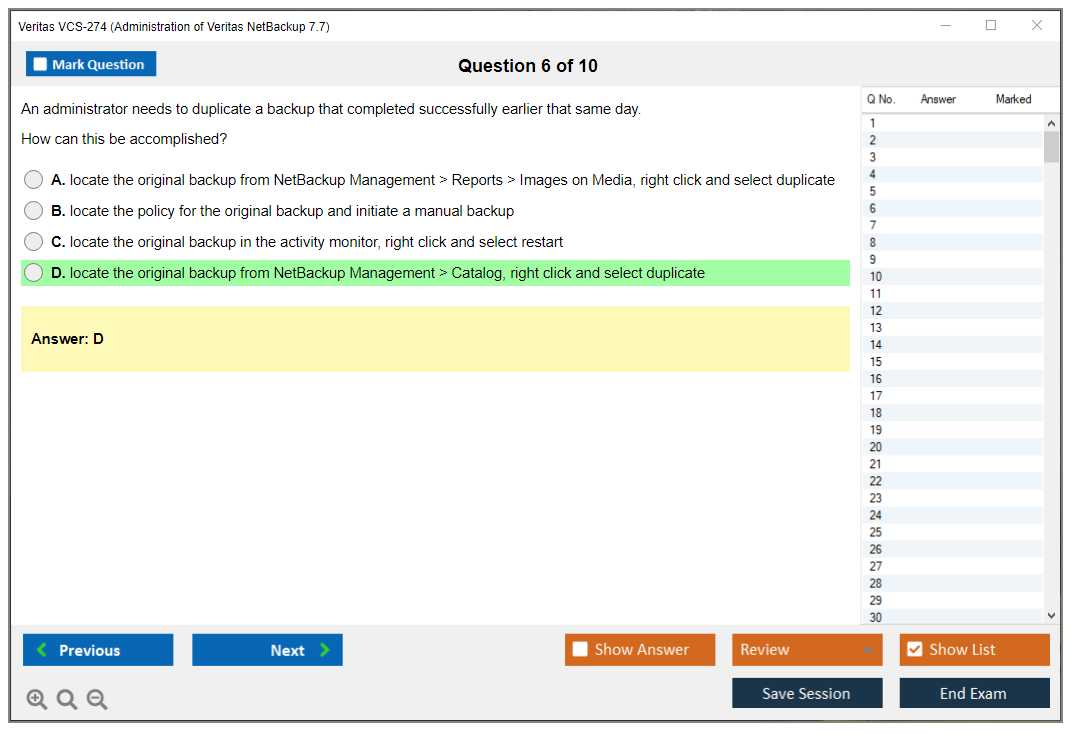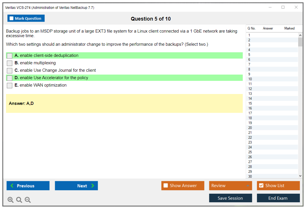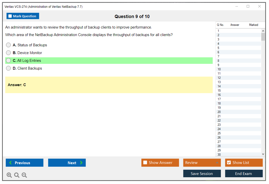 The Veritas VCS-274 (Administration of Veritas NetBackup 7.7) exam is designed to validate the knowledge and skills of IT professionals in administering Veritas NetBackup 7.7 environments. The exam covers a variety of topics including installation, configuration, maintenance, and troubleshooting of NetBackup software.