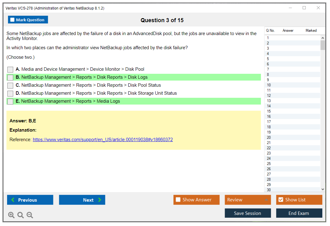 What are the Sample Questions of Veritas VCS-278 Exam?