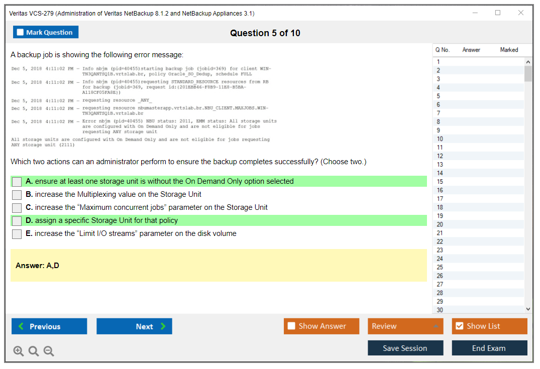 The Veritas VCS-279 exam, also known as Administration of Veritas NetBackup 8.1.2 and NetBackup Appliances 3.1.2, is designed to validate the skills and knowledge necessary to administer, configure, and manage Veritas NetBackup 8.1.2 and NetBackup Appliances 3.1.2.