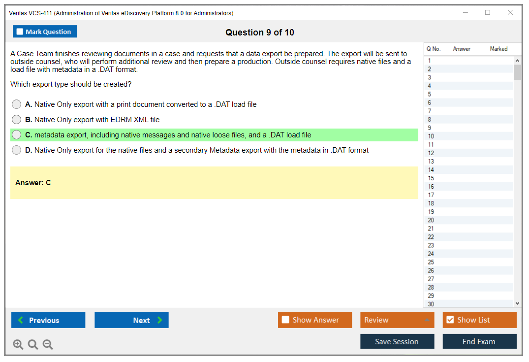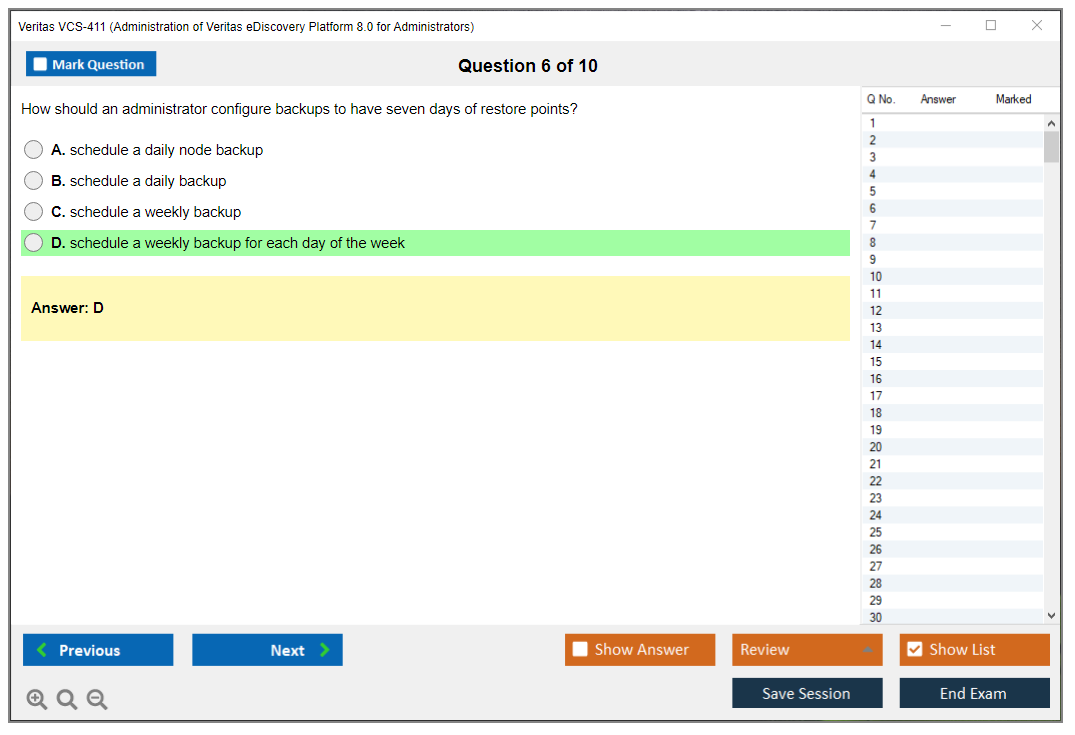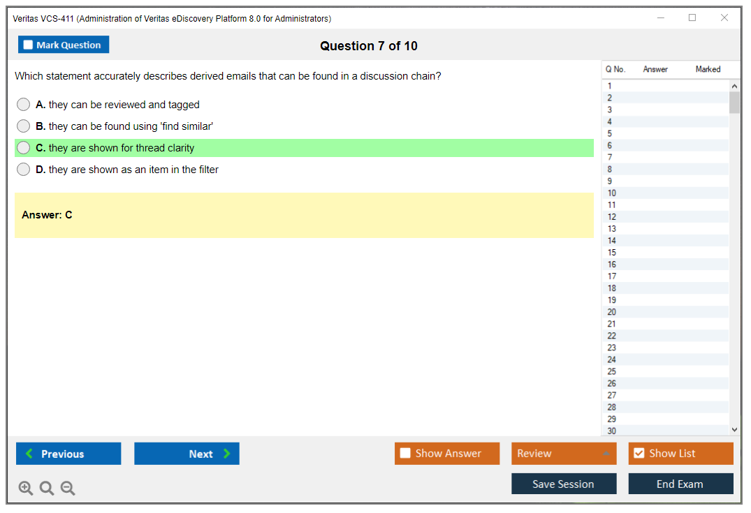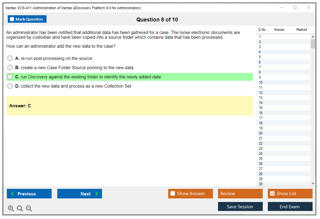 The Veritas VCS-411 (Administration of Veritas eDiscovery Platform 8.0 for Administrators) exam is designed to test the knowledge and skills of candidates in administering the Veritas eDiscovery Platform 8.0. The exam covers various aspects such as installation, configuration, maintenance, and troubleshooting of the platform.