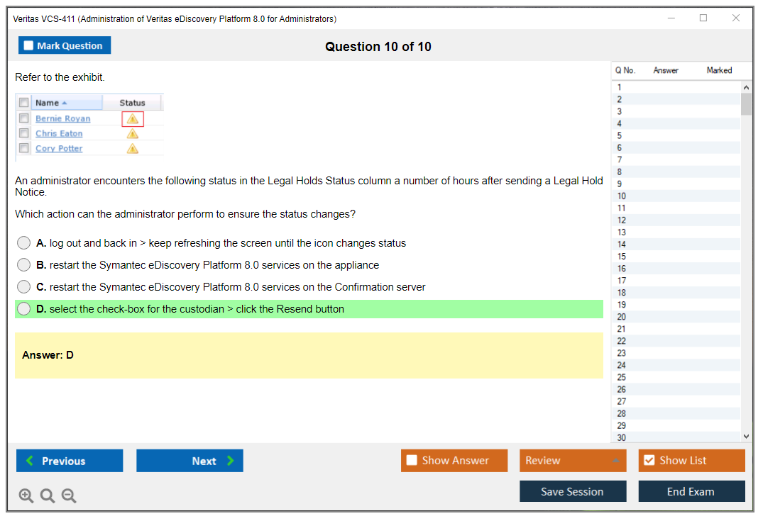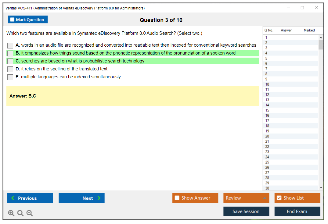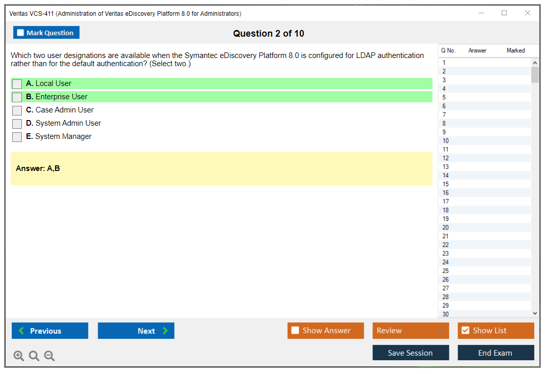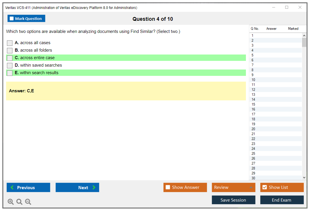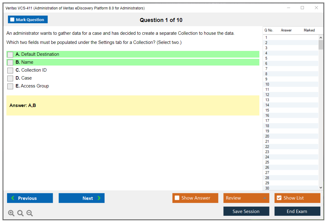 The Veritas VCS-411 (Administration of Veritas eDiscovery Platform 8.0 for Administrators) exam is designed to test the knowledge and skills of candidates in administering the Veritas eDiscovery Platform 8.0. The exam covers various aspects such as installation, configuration, maintenance, and troubleshooting of the platform.