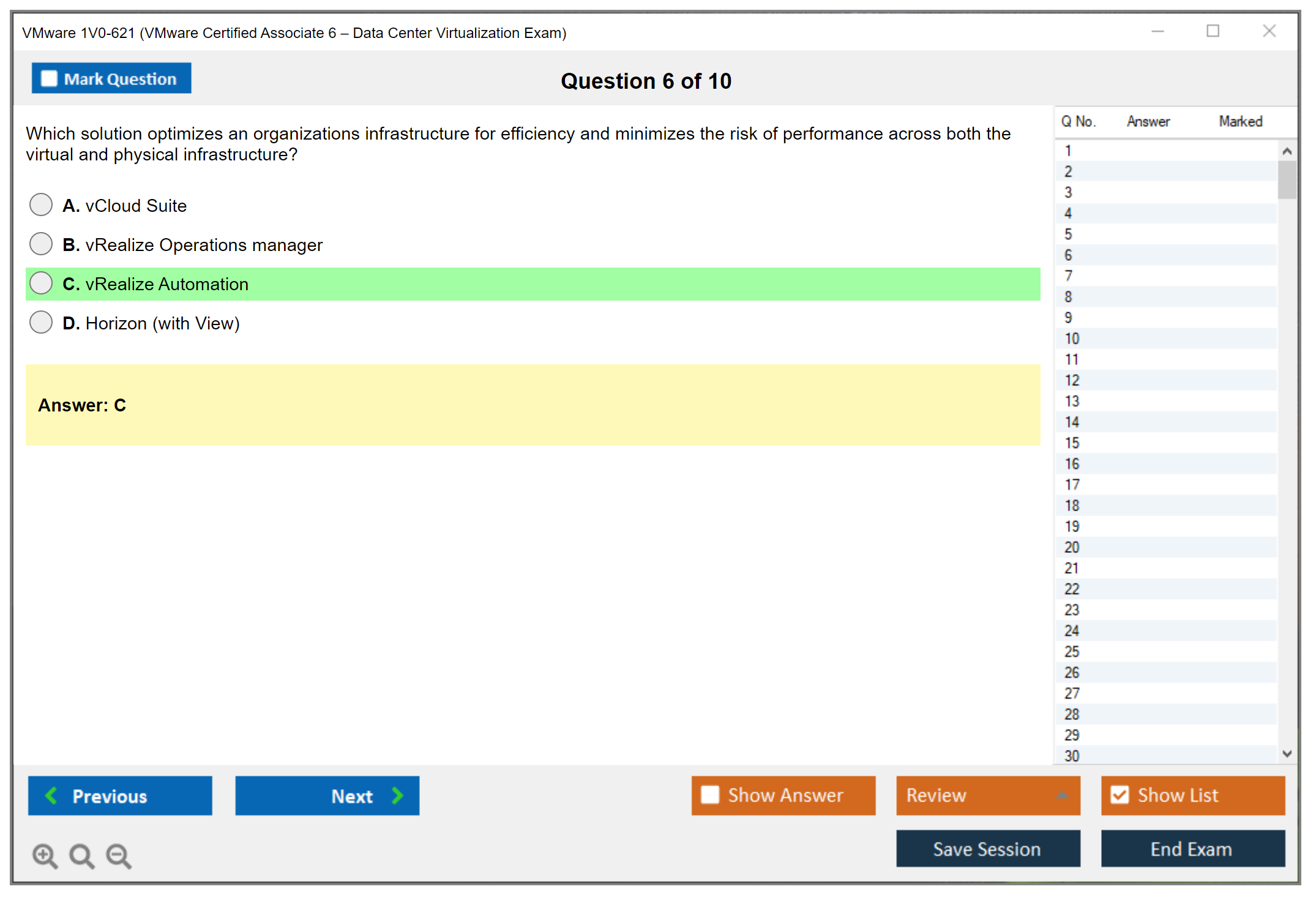 The VMware 1V0-621 (VMware Certified Associate 6 – Data Center Virtualization Exam) is designed to validate a candidate's understanding of virtualization technology and VMware products. It focuses on fundamental concepts of VMware vSphere and the ability to perform basic tasks with VMware vSphere environments.