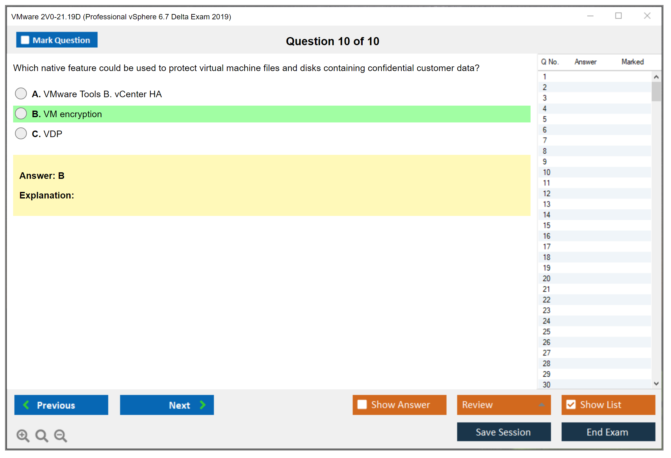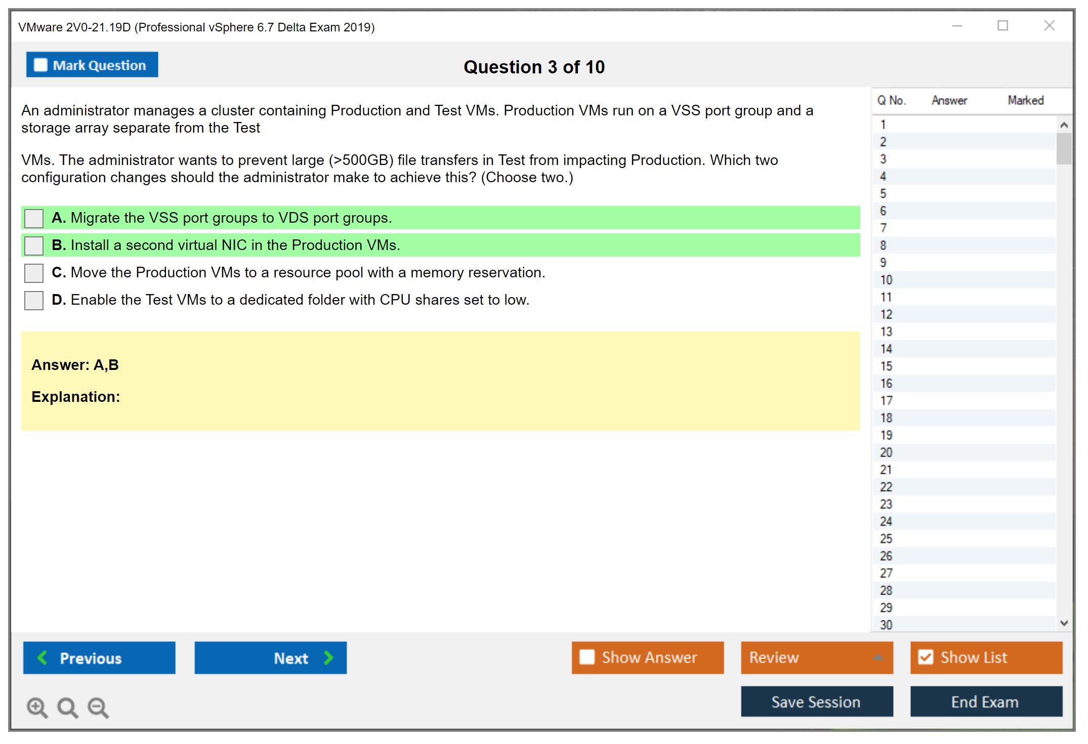 DumpsBoss was a lifesaver for my 2v0-21.19d exam dumps prep! Their practice tests mirrored the real exam format perfectly, and the explanations helped me solidify my understanding of key vSphere concepts. Highly recommend for anyone serious about acing the VMware certification.