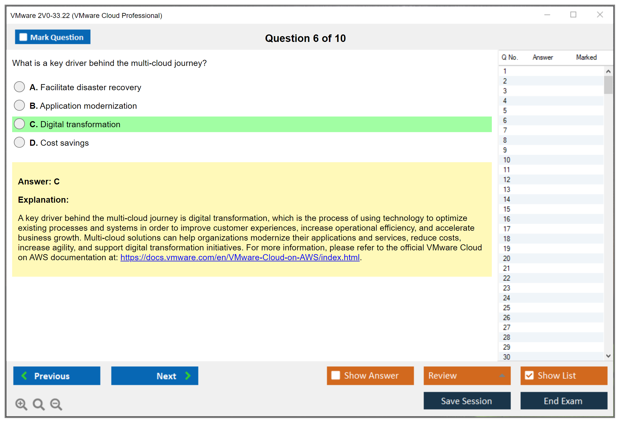 The VMware 2V0-33.22 (VMware Cloud Professional) exam is designed to validate the skills and knowledge required to effectively manage and operate VMware Cloud environments. It assesses the candidate's ability to deploy, configure, and manage VMware Cloud solutions.