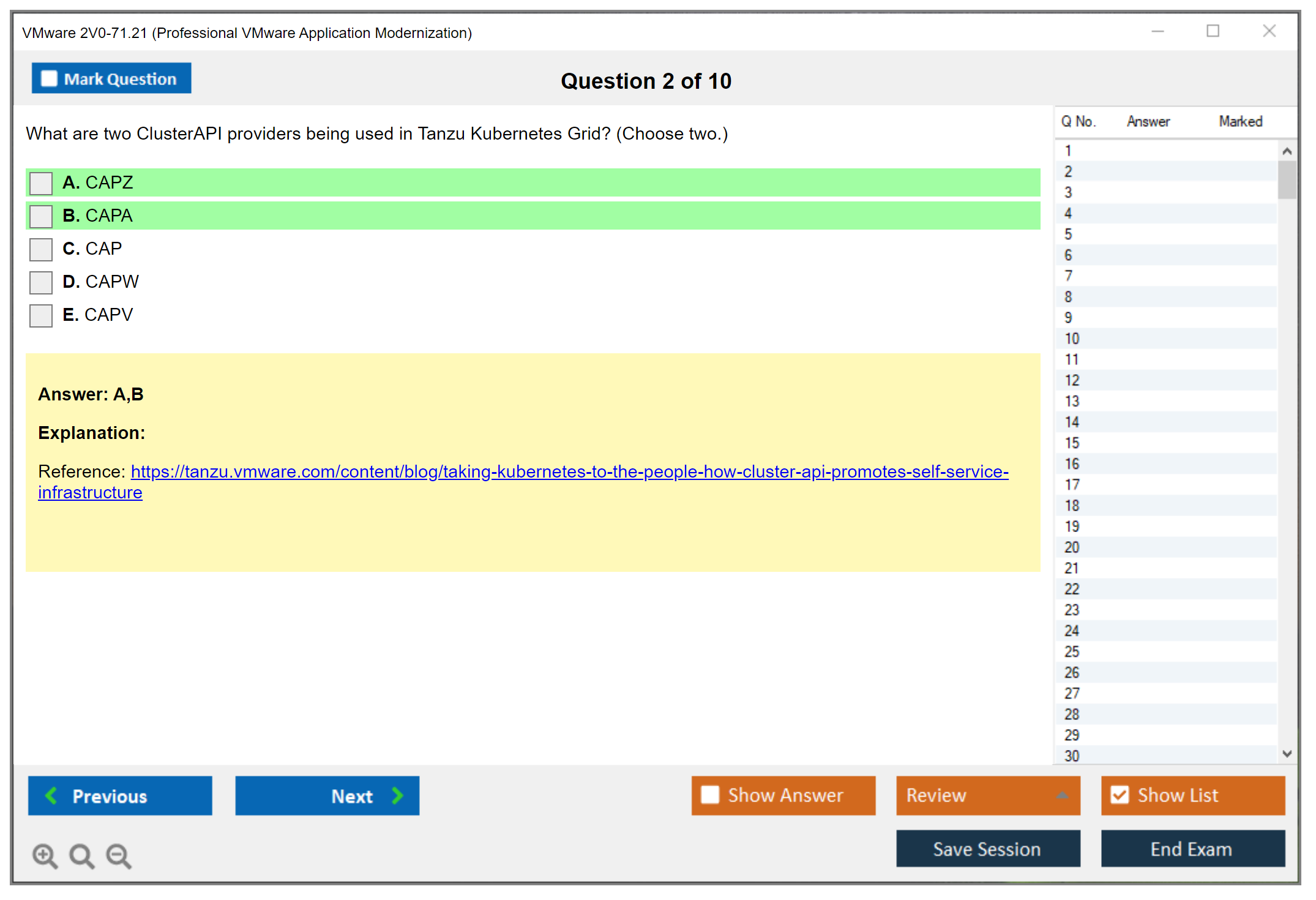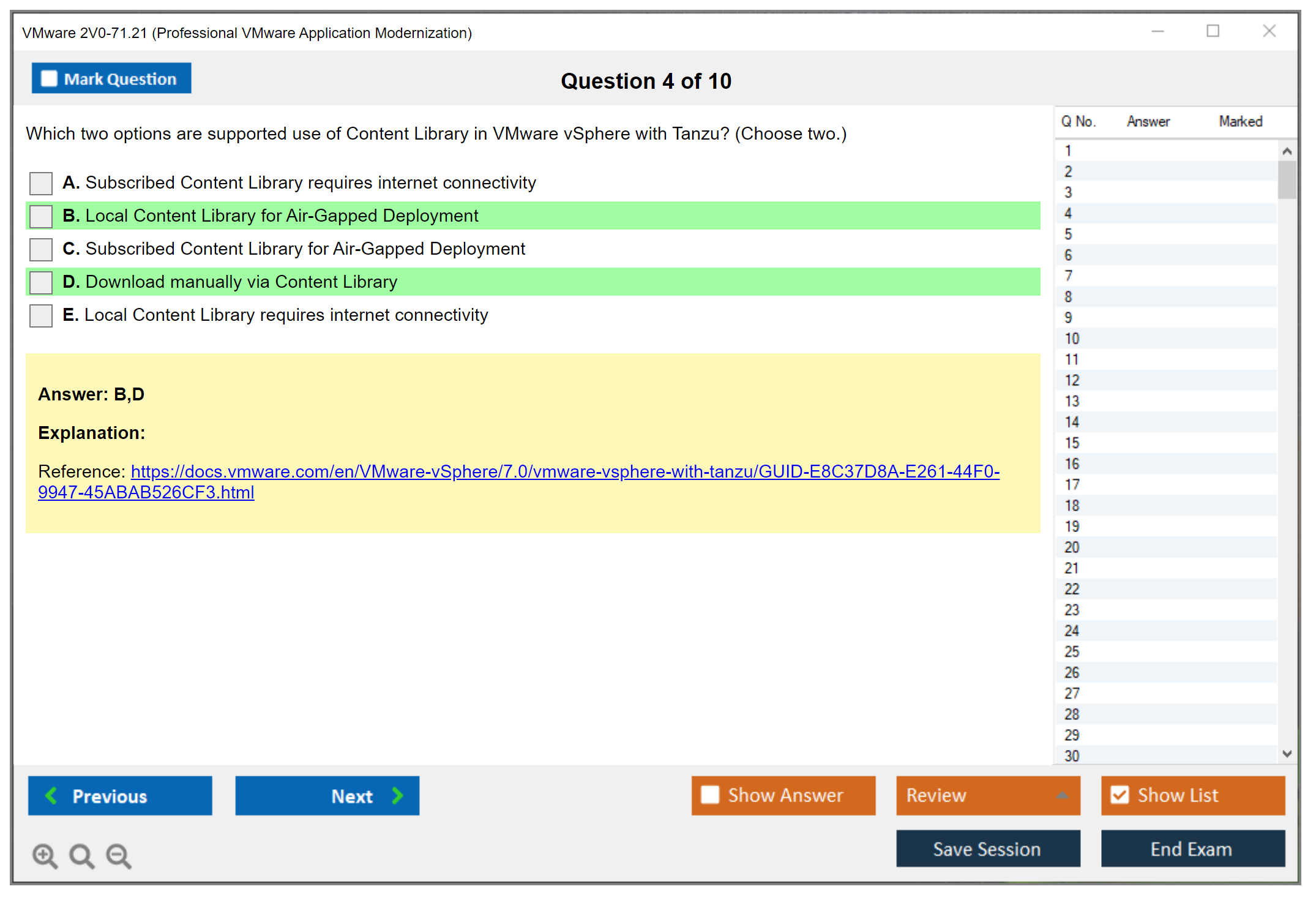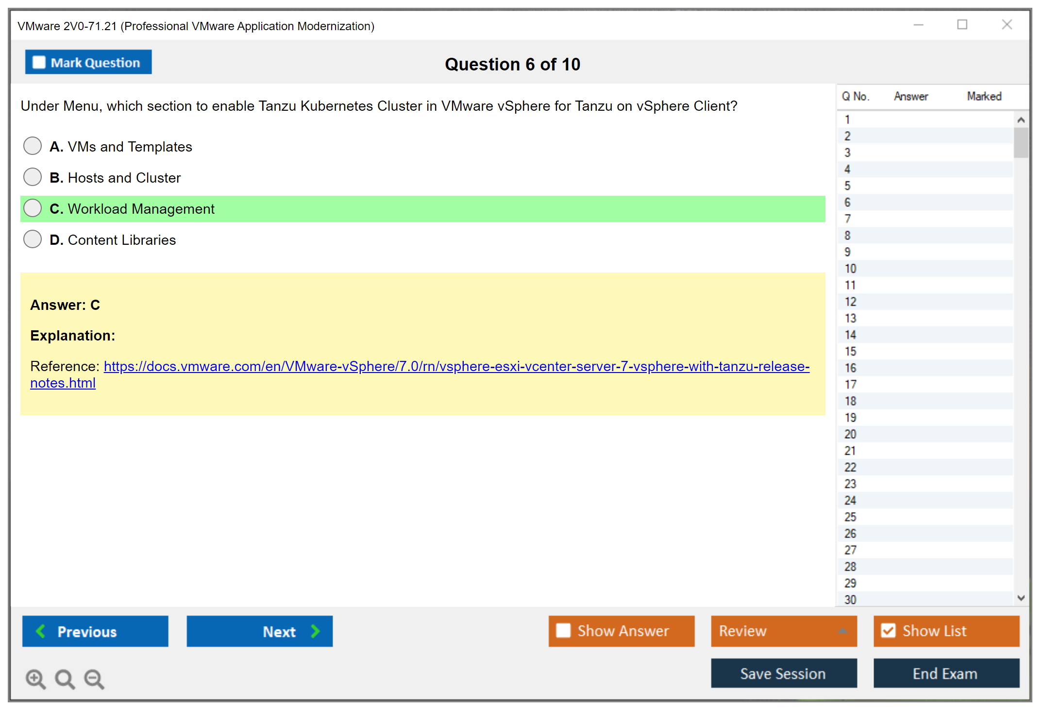 Note: VMware 2V0-71.21 (Professional VMware Application Modernization) will not receive any new updates.