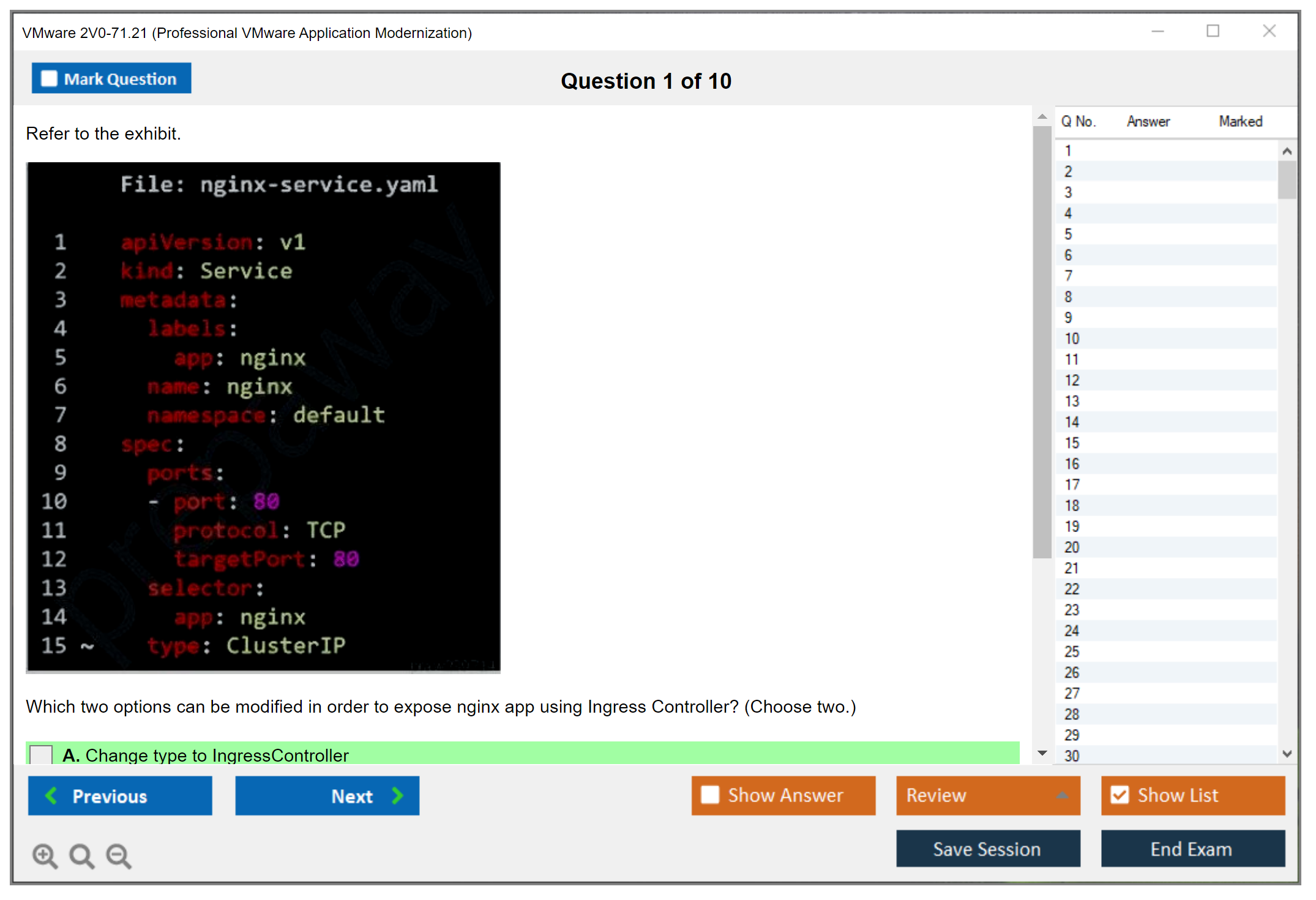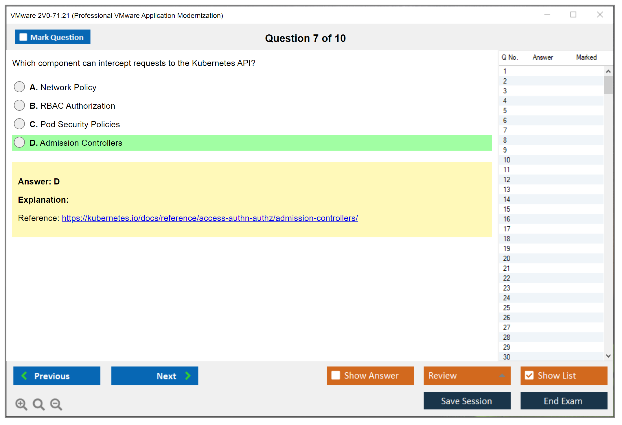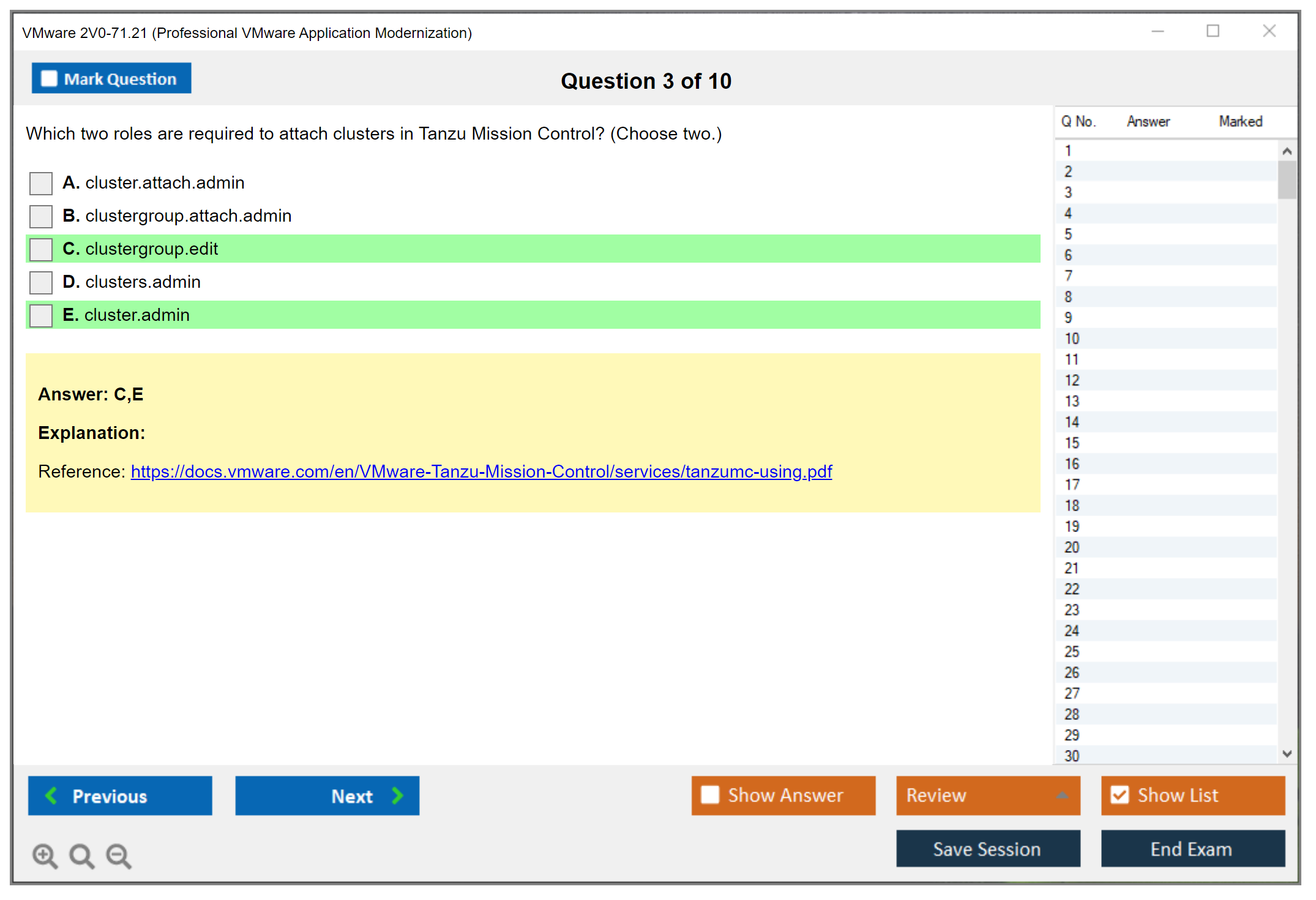 Note: VMware 2V0-71.21 (Professional VMware Application Modernization) will not receive any new updates.