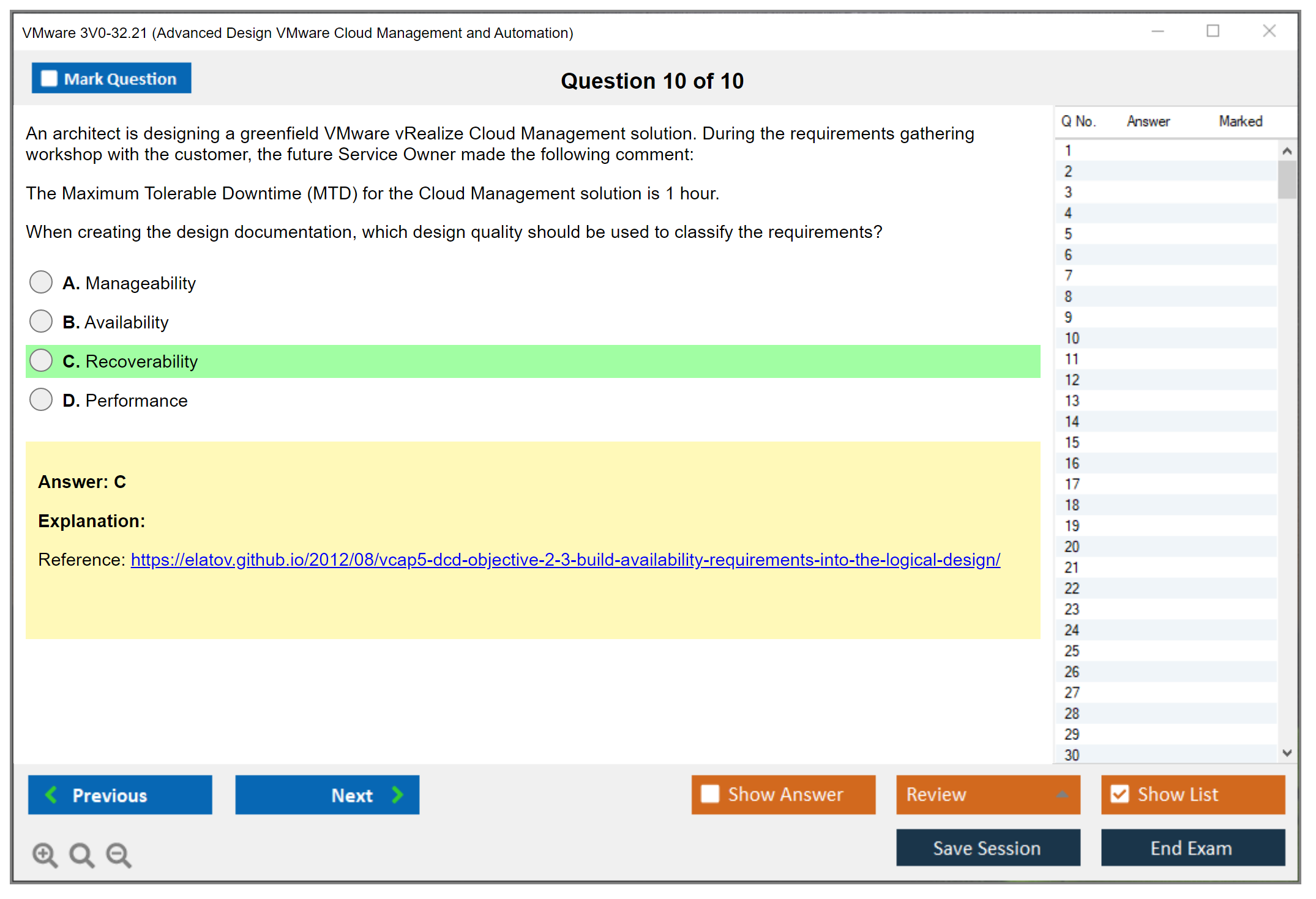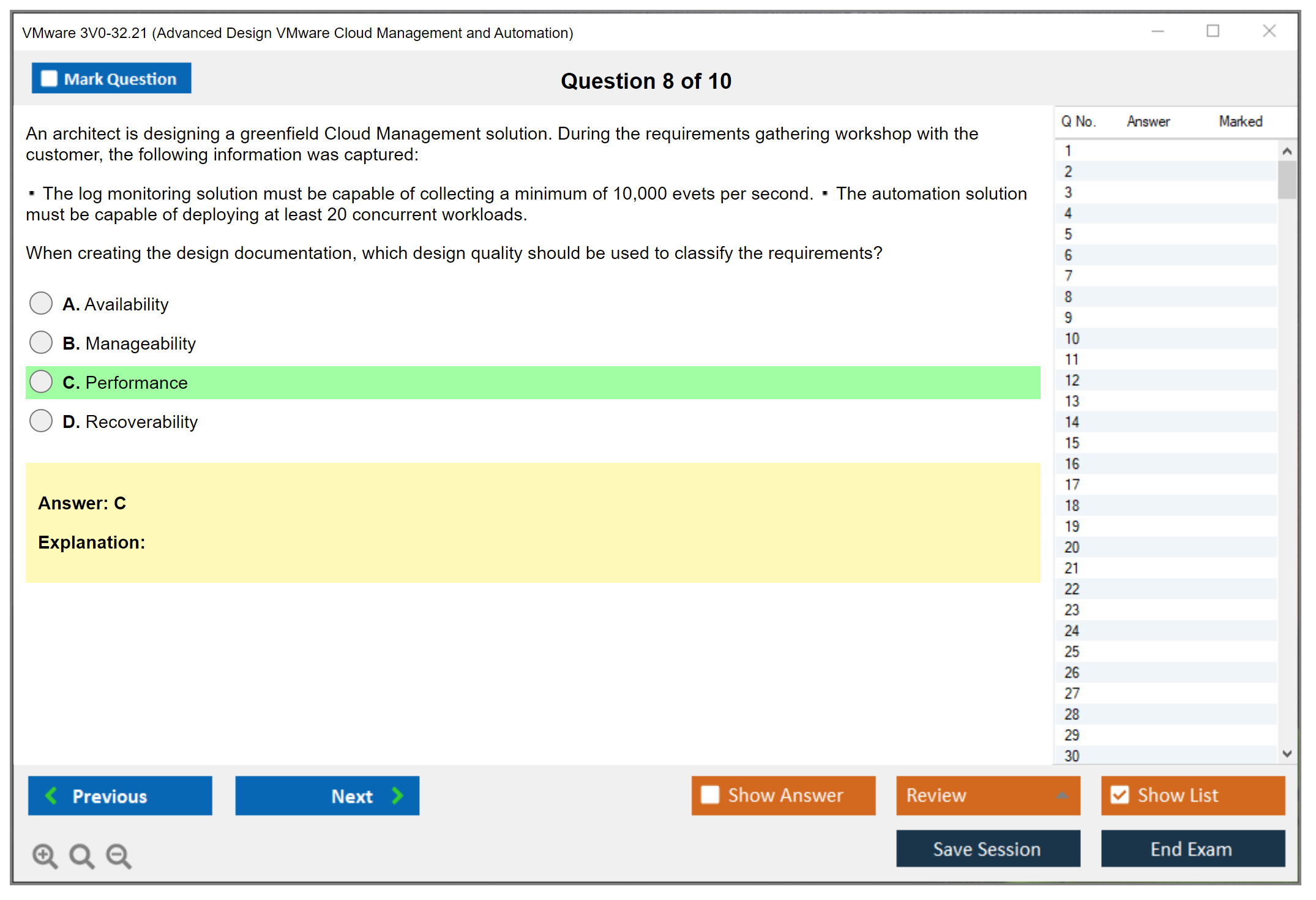 The VMware 3V0-32.21 (Advanced Design VMware Cloud Management and Automation) Exam is designed for individuals who are looking to demonstrate their expertise in designing and integrating VMware Cloud Management Platform solutions. This exam tests a candidate's ability to design a VMware vRealize solution by validating their understanding of cloud management design principles and methodologies.