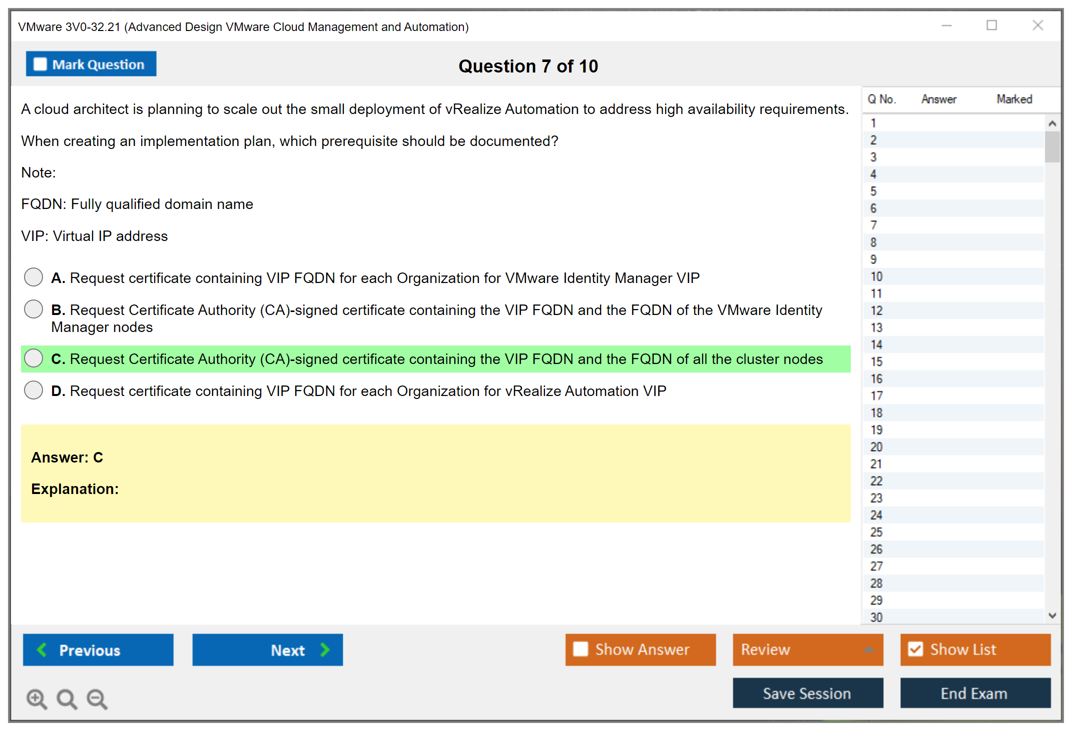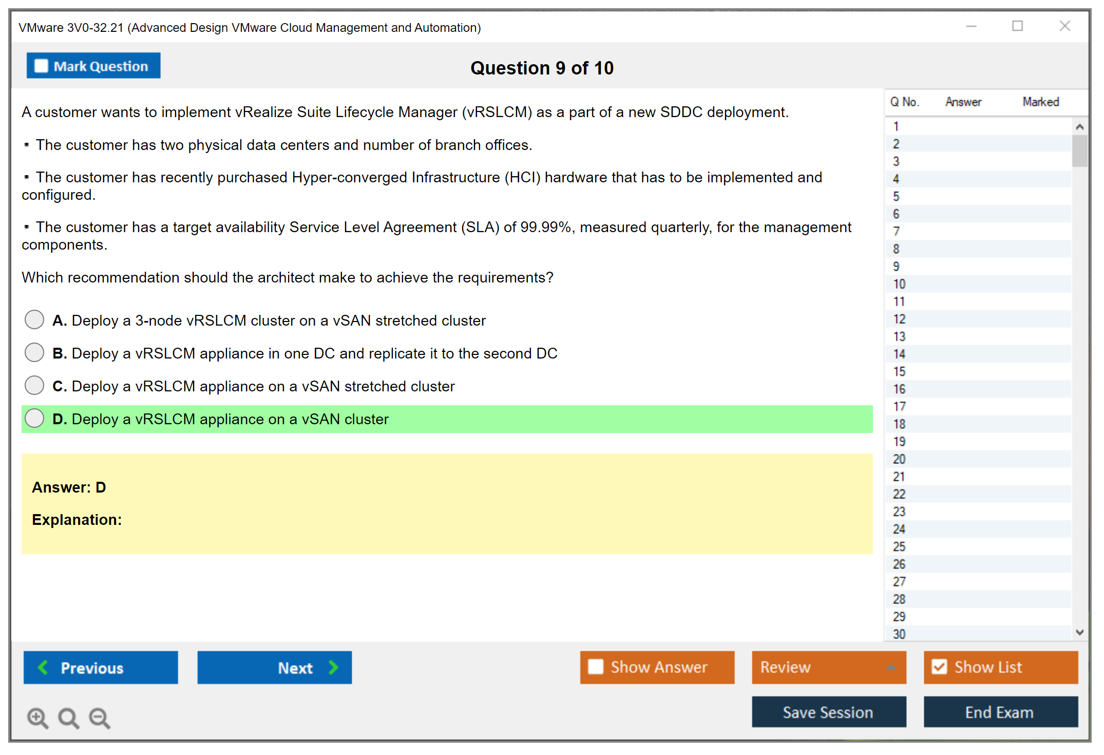 Note: VMware 3V0-32.21 (Advanced Design VMware Cloud Management and Automation) will not receive any new updates.