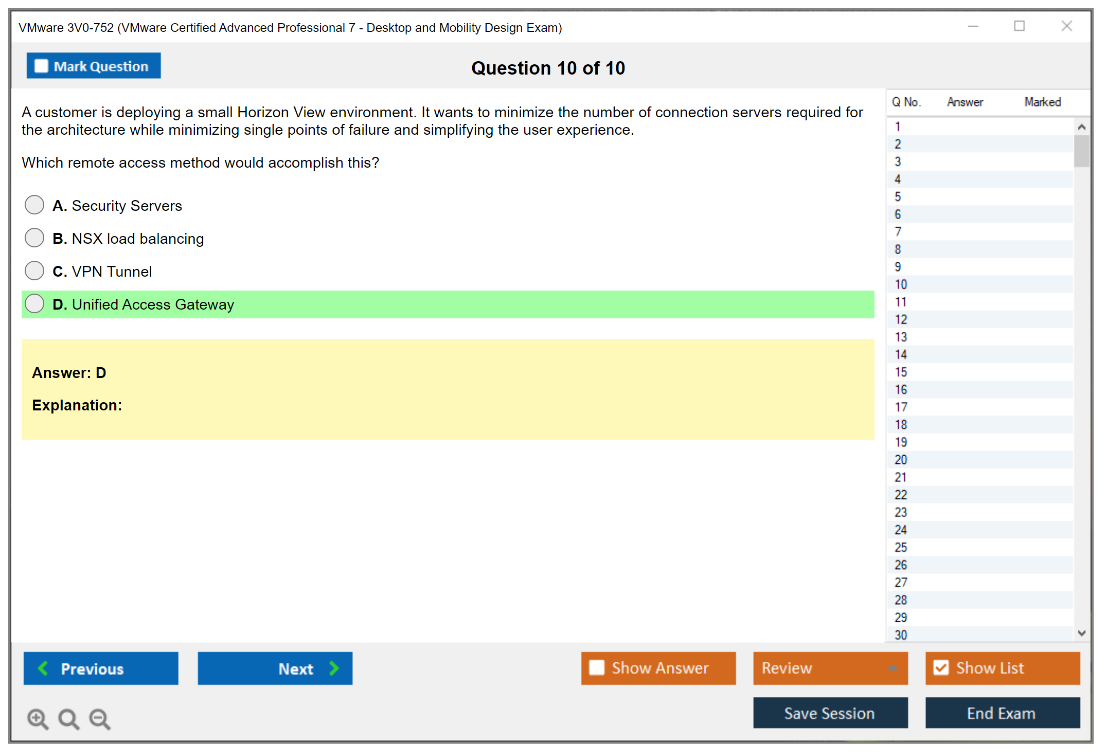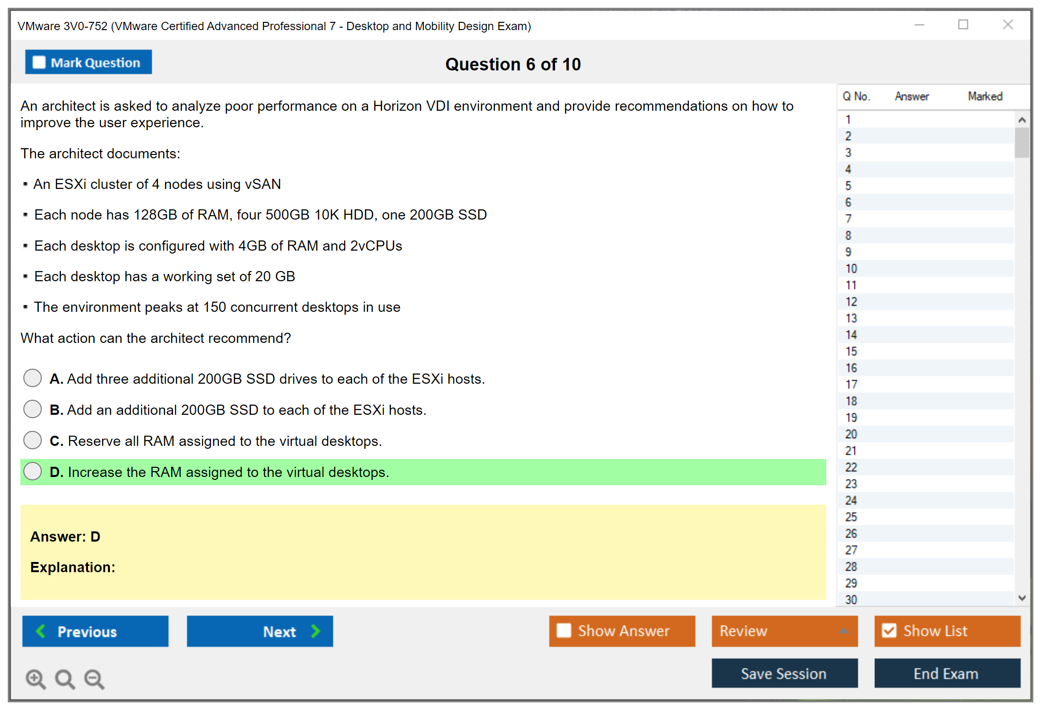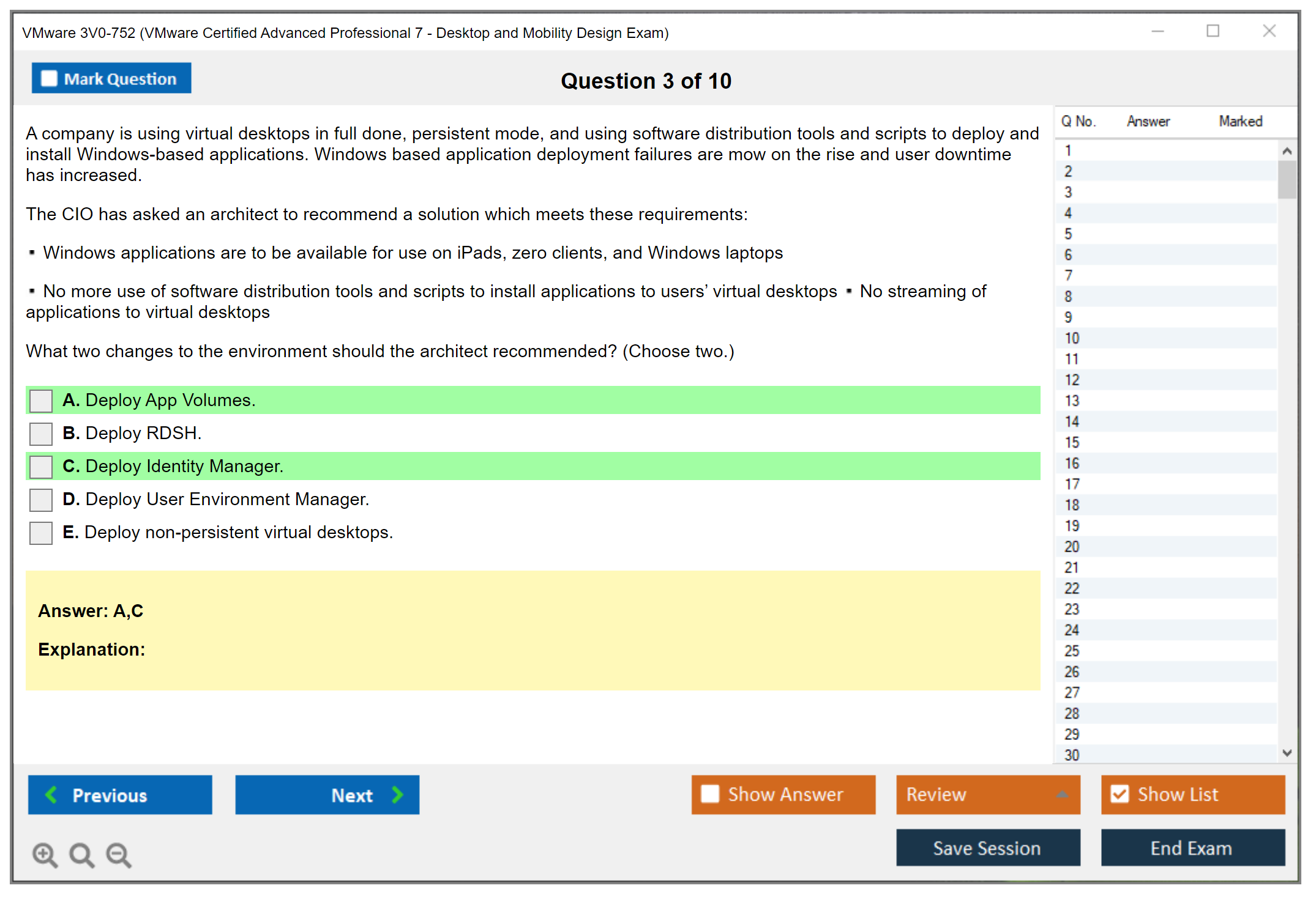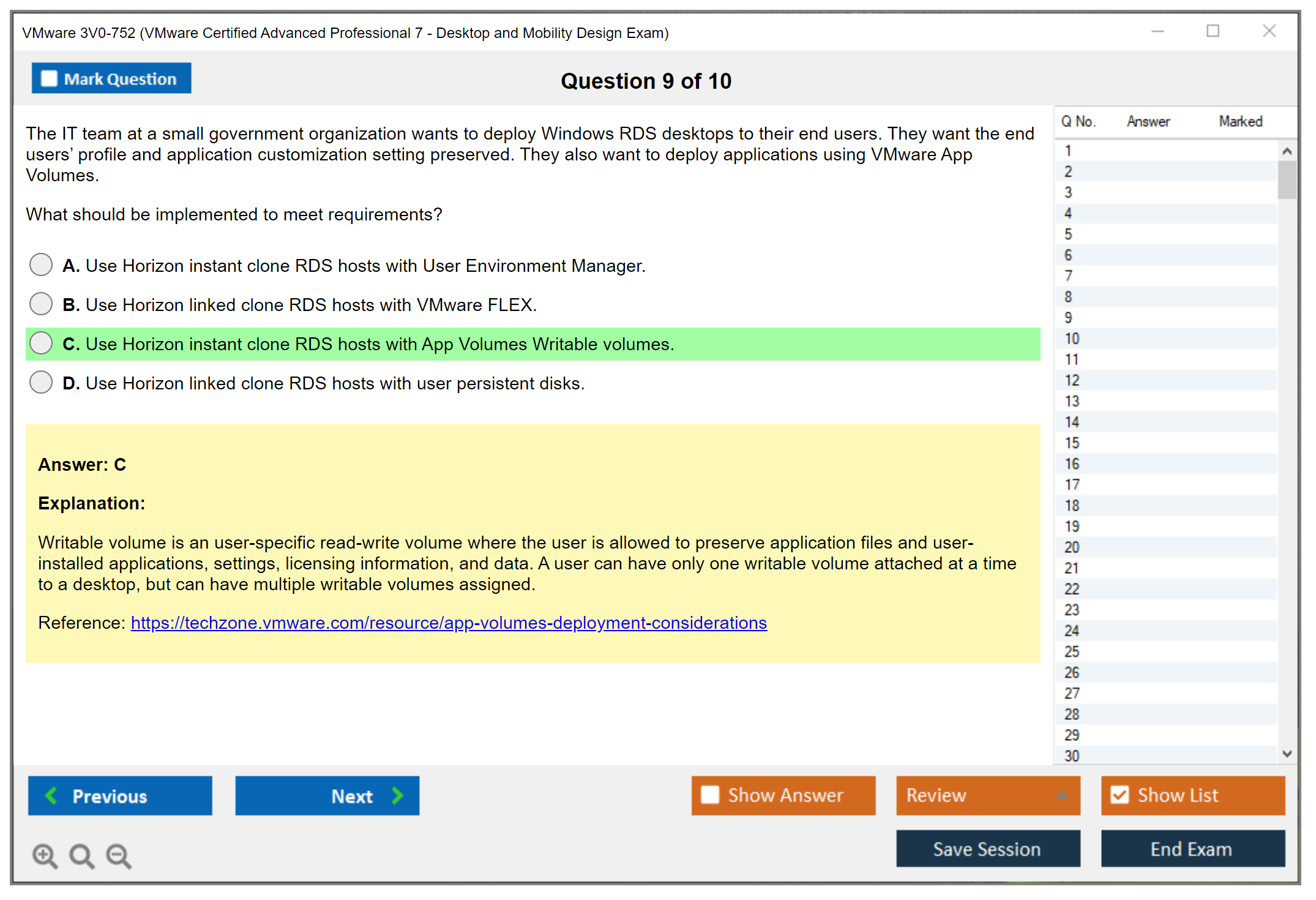The VMware 3V0-752 (VMware Certified Advanced Professional 7 - Desktop and Mobility Design Exam) is an advanced-level certification exam that validates a candidate's ability to design and deploy a VMware Horizon solution. It focuses on the skills and knowledge needed to design a Horizon solution that meets customer requirements and follows VMware best practices.