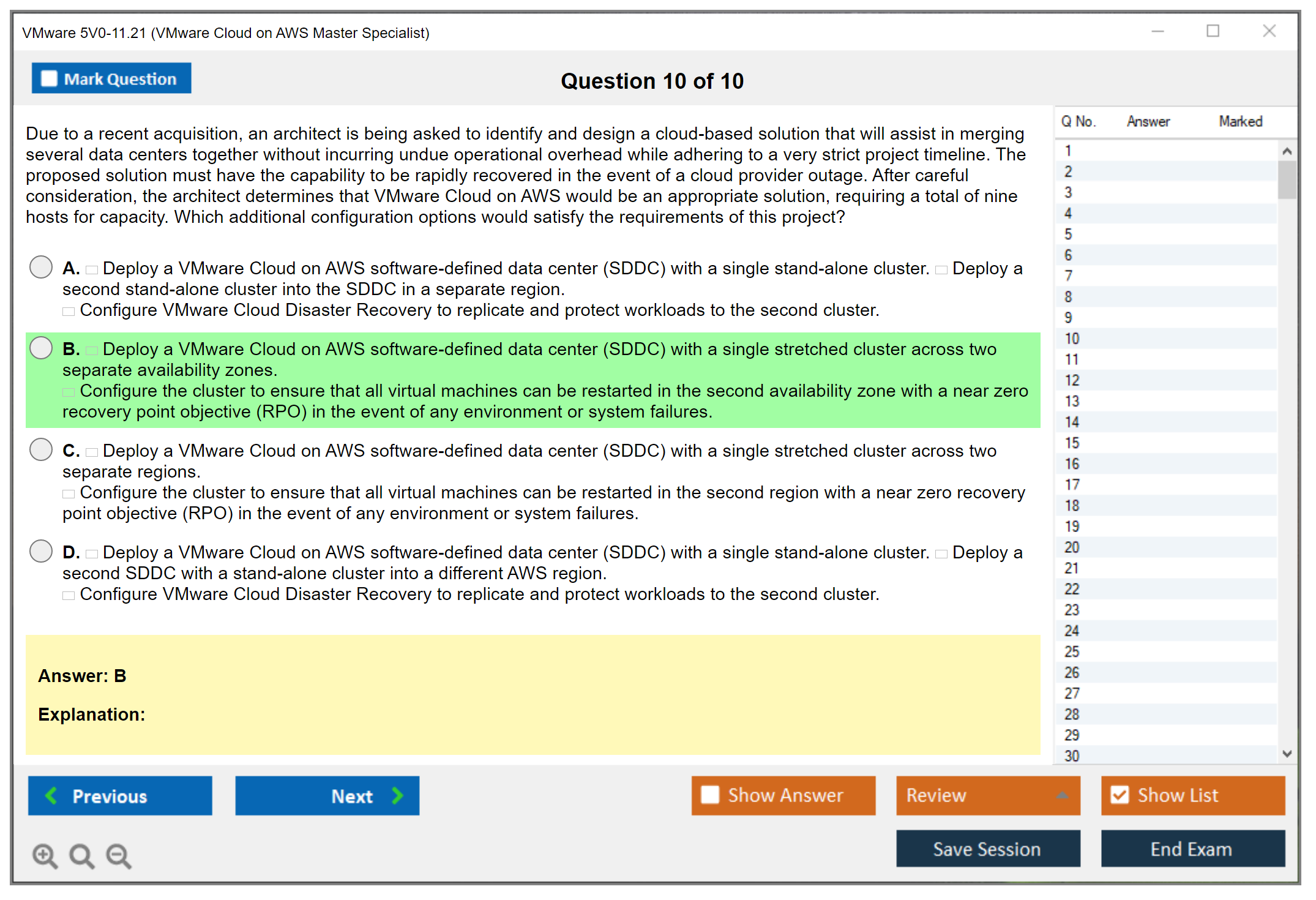 The VMware 5V0-11.21 Exam, also known as the VMware Cloud on AWS Master Specialist exam, is intended to certify professionals who have expertise in deploying and managing VMware Cloud on AWS environments.