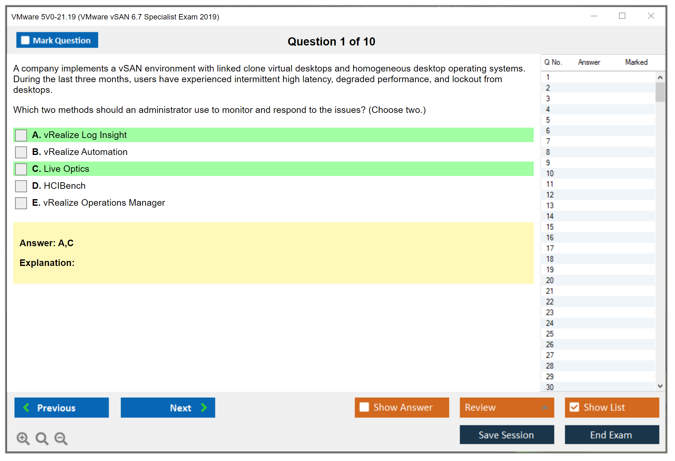 5V0-21.19 (VMware vSAN 6.7 Specialist Exam 2019) PDF + Test Engine