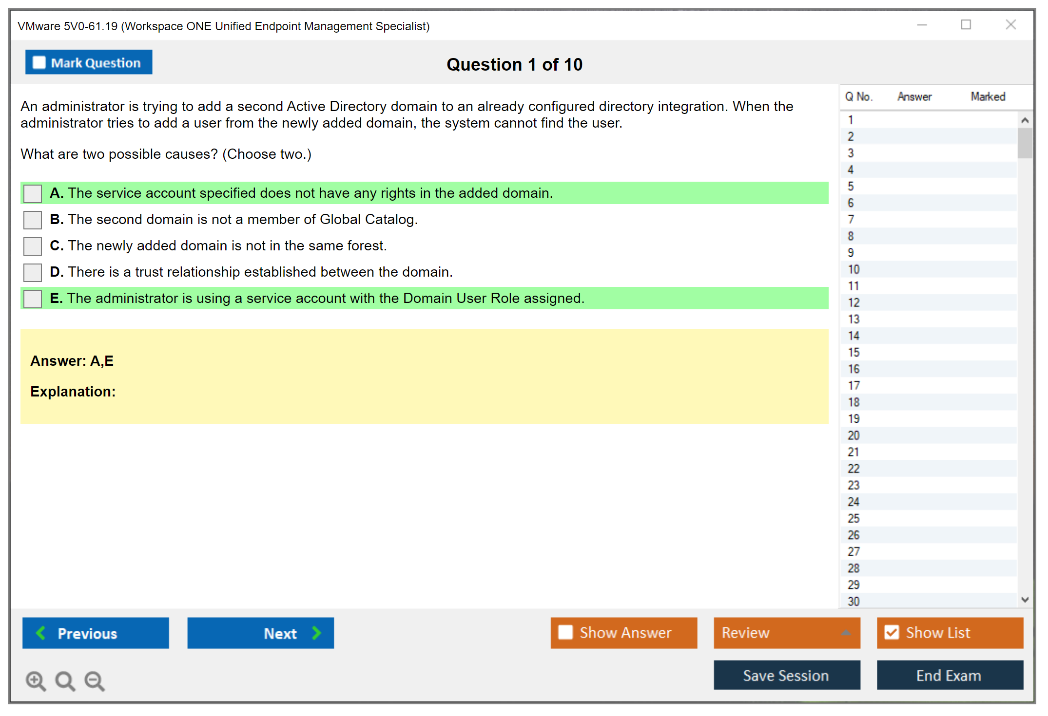 What are the Sample Questions of VMware 5V0-61.19 Exam?