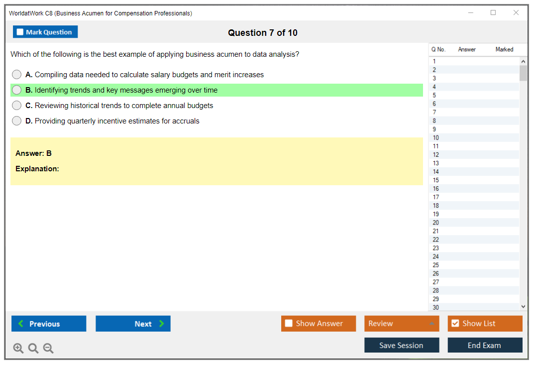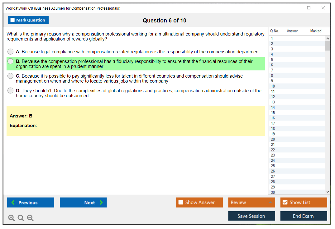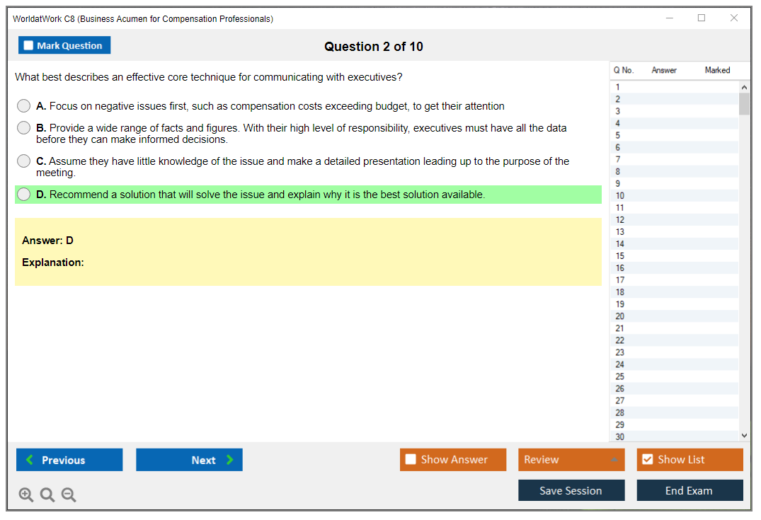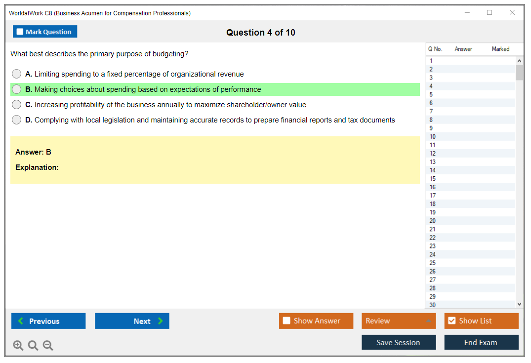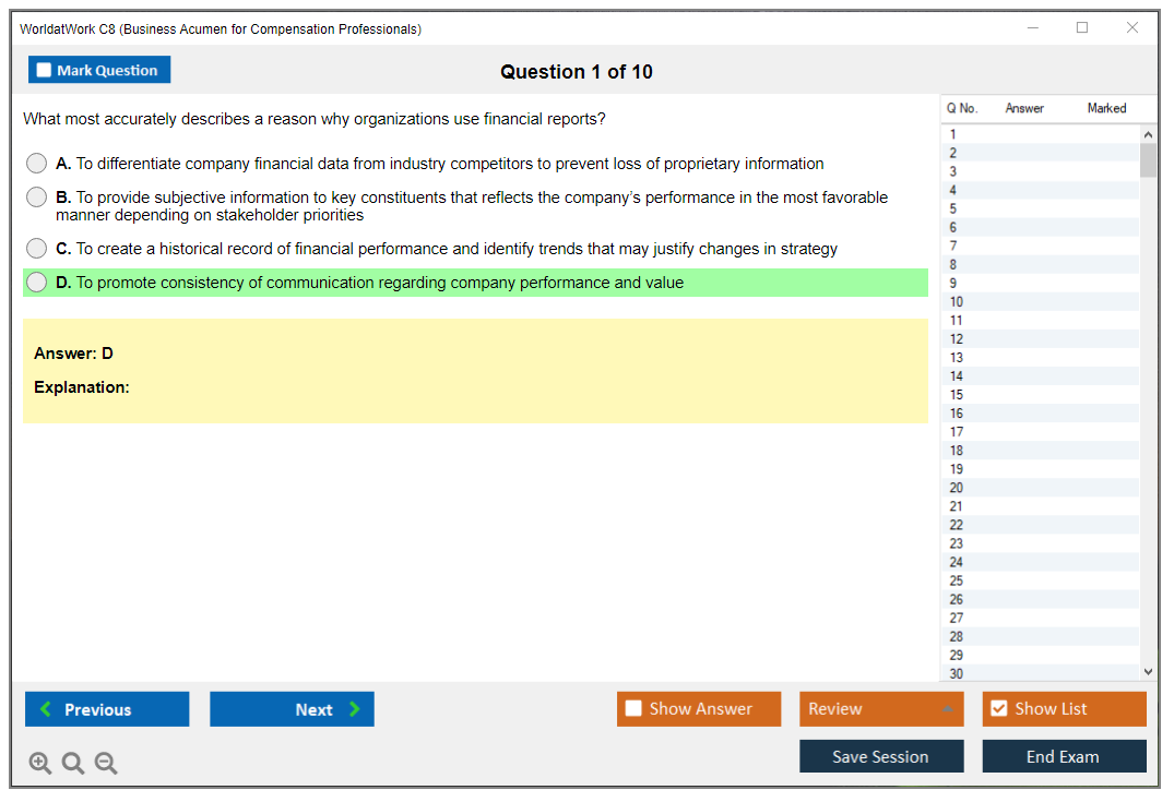 The WorldatWork C8 (Business Acumen for Compensation Professional) Exam is designed to test the knowledge and skills of compensation professionals in understanding and applying business acumen in their roles.