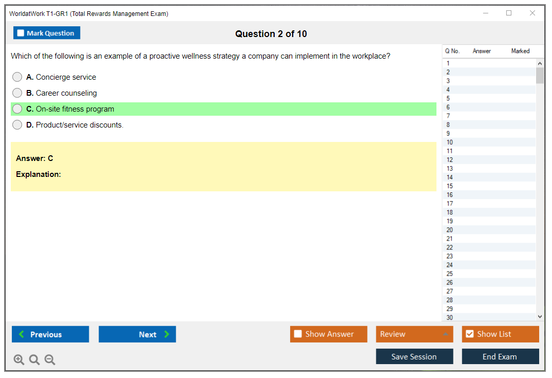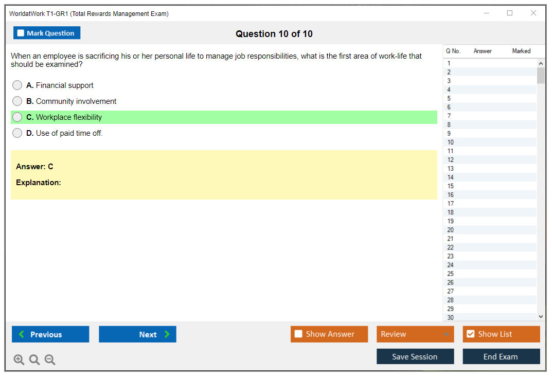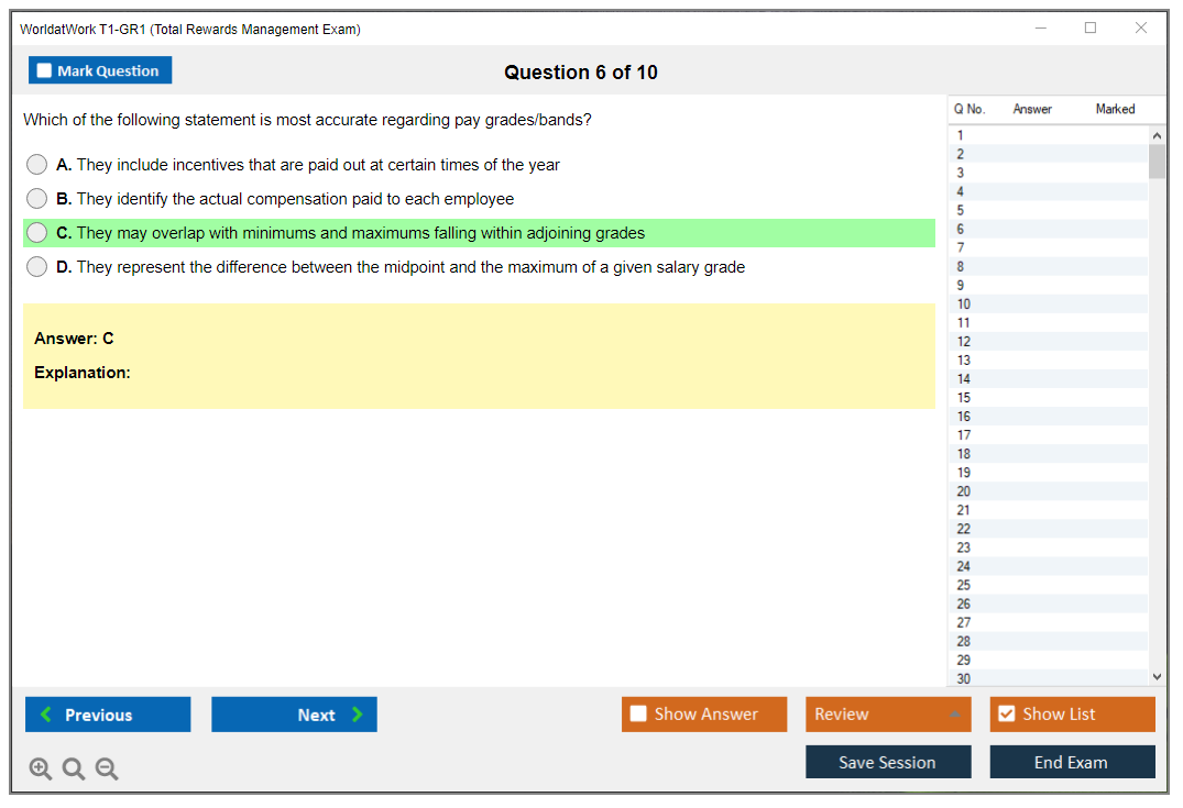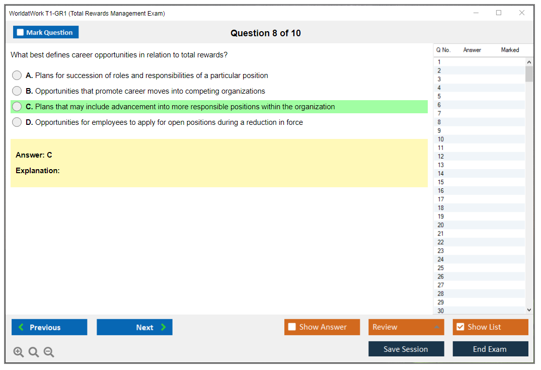 The WorldatWork T1-GR1 (Total Rewards Management Exam) is a professional certification exam designed to test the knowledge and skills of individuals in the field of total rewards management. It covers various aspects of compensation, benefits, work-life effectiveness, recognition, performance management, and talent development.