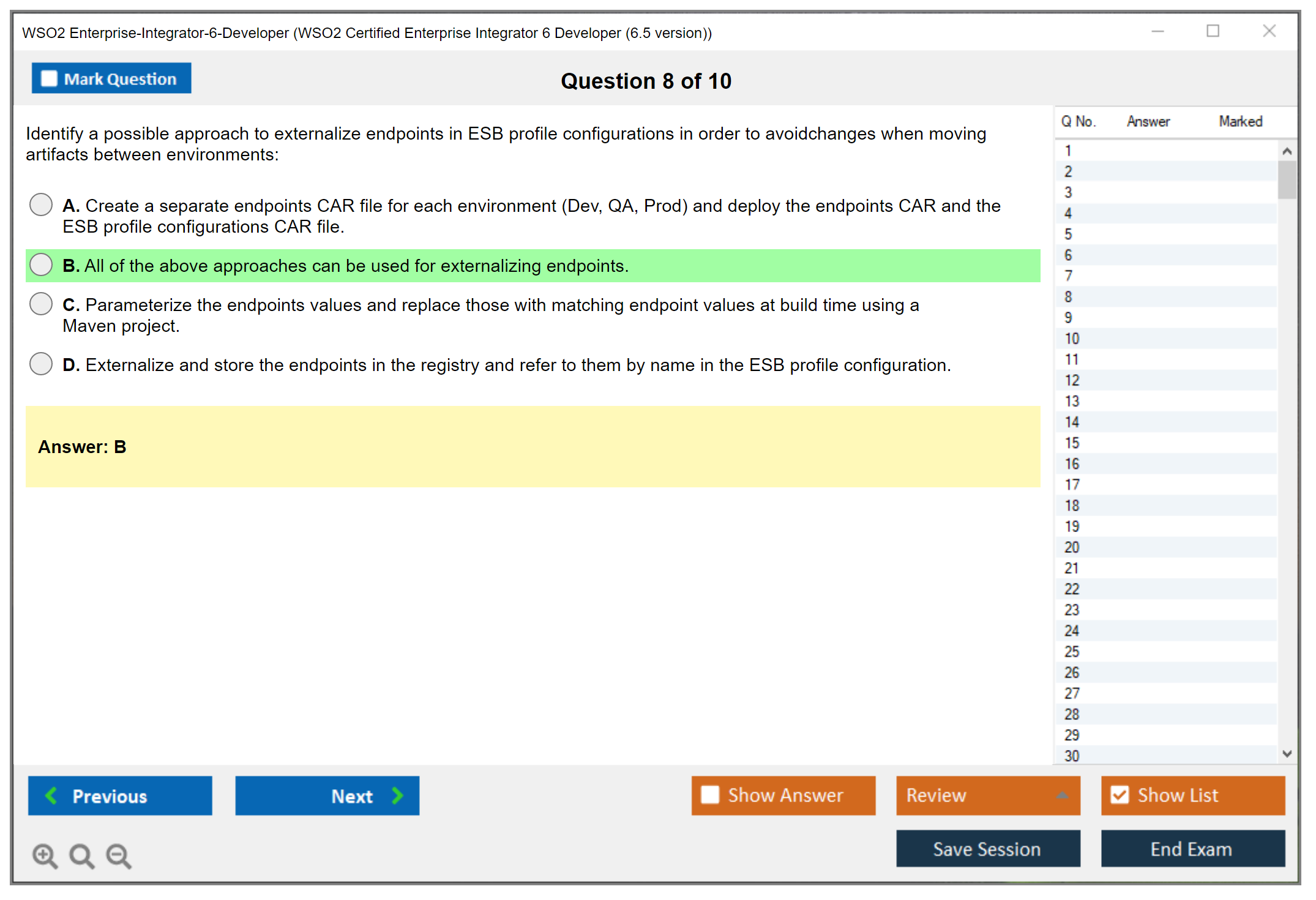 The question format of the WSO2 Enterprise-Integrator-6-Developer Exam includes multiple-choice, multiple-select, and scenario-based questions.